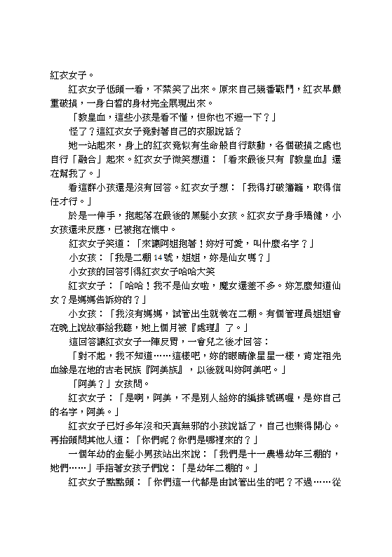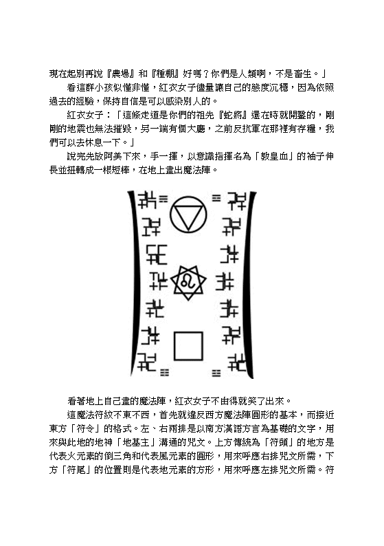 Set in the end of humanity, The Road of the Great Language Rune features Yar, a mysterious girl in a red dress, who helps 66 children to survive in a series of underground tunnels. As Yar tells her story, it is revealed that for hundreds of years, she has been serving as the warden of the ultimate demon, who is sealed on a small island on the edge of the civilization. It is her duty to ensure that the demon is never to be released, so that the Western World can live in peace.