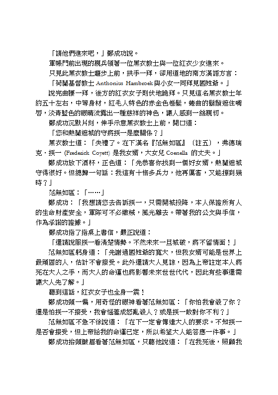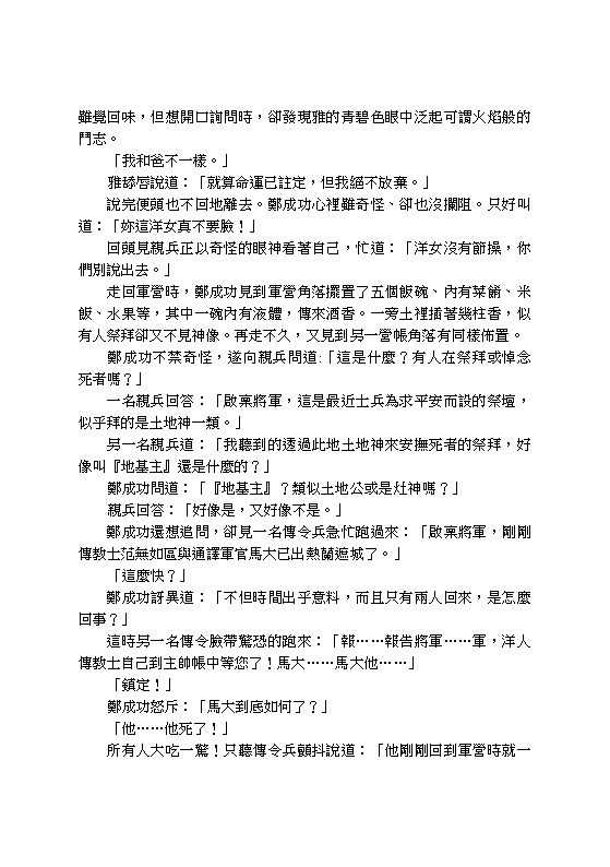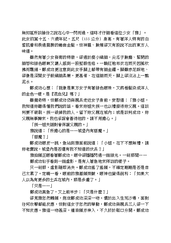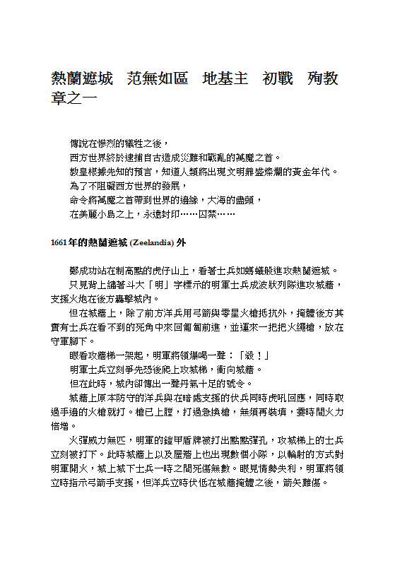 However, things never go as they are planned. In 1661, Yar met a man who led his troops from China to the island of Taiwan to drive away the occupying Dutch forces. As foretold by Destiny, Zheng Chenggong would establish a kingdom here and eventually become a local deity. But he had to confront his first enemy here - his own greed. On top of that, the local Aborigines would fight to death against anyone who dares to take their land...