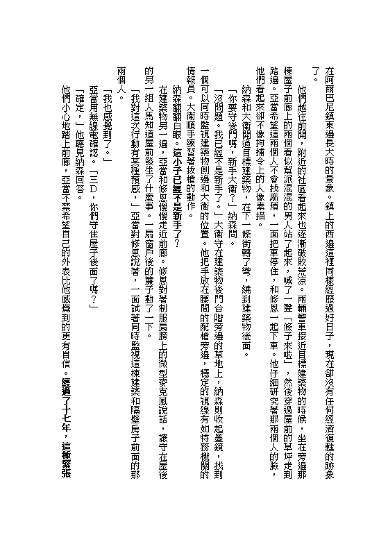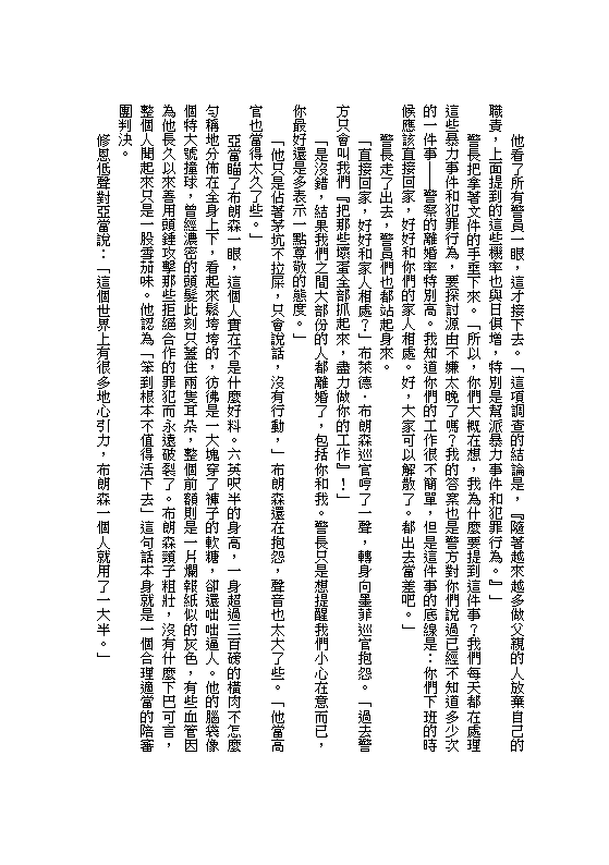 「所謂『勇者無懼』,實在不容易!這本書中的父親們形形色色,並非完人,其各有各的偏見,各有各的錯誤,卻也各有各的覺醒,而時間永不嫌晚!男人的苦心深重,任重道遠,都透過作者創造的生動故事而深切地描繪出來,讓讀者一會兒因為警察辦案的動作情節而心跳加速,一會兒又為了他們的委屈苦楚而熱淚盈眶。《勇者無懼》是一部不可多得的優秀小說,值得所有即將或已經為人父的男性細讀,女性讀者當然也應該看,多少體諒一下做個好男人的責任到底有多麼艱鉅。」... 繼續閱讀