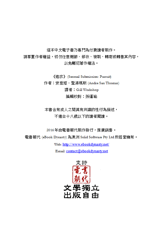 電書朝代為澳大利亞 Solid Software Pty Ltd 所經營擁有。Copyright © 2019 eBookDynasty.net 版權所有,翻印必究。