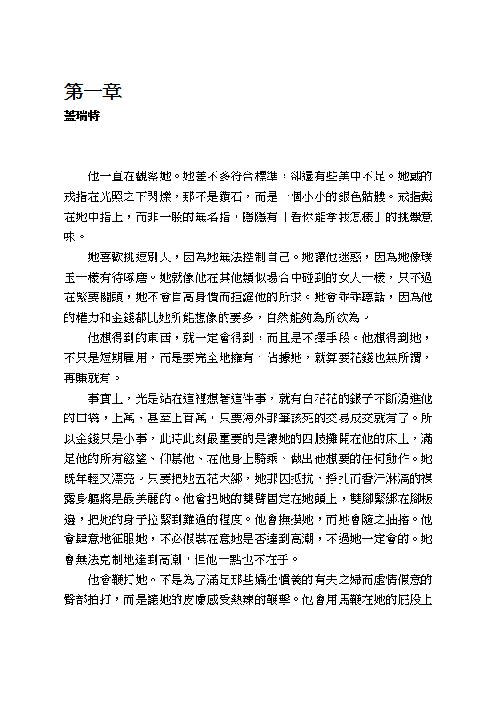 敬告讀者:這本書含有成人之間經過共識的性行為描述,不適合十八歲以下的讀者閱讀。