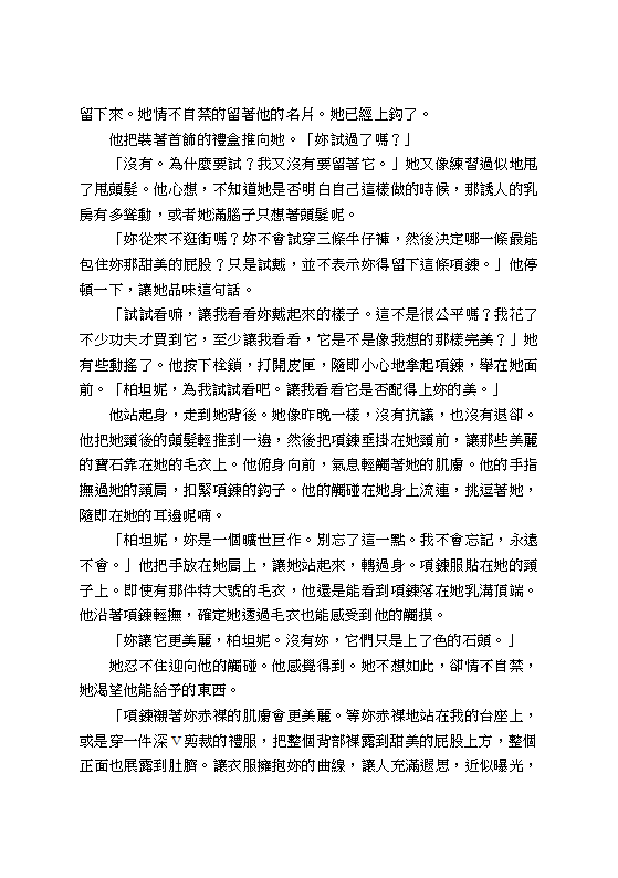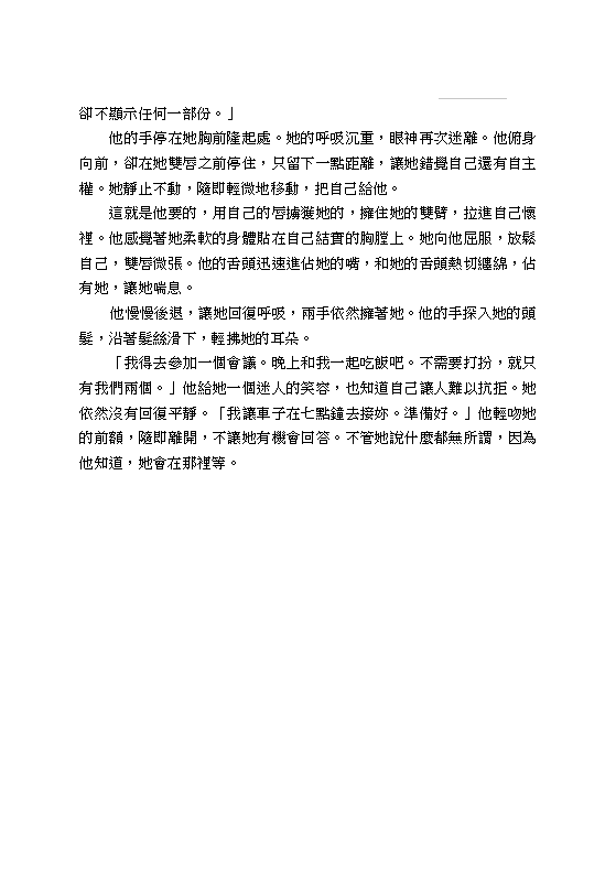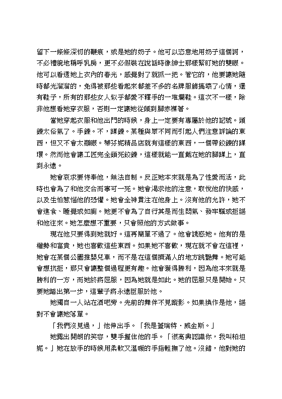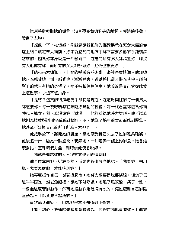 這不是一般的情色小說,而是一部生動細膩的羅曼史,充滿了奴隸對主人所忠誠付出的無限渴望和熱情。