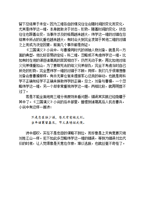 第二类强大,本书作者以《三国演义》对东方文化的影响,称之为 “贯中规则”。作者认为历史小说或历史是作者或写史者用自己的史观写下事件的面貌,他们所描绘的图像或许与历史真相不完全吻合,但由此导出的规则,发人深省,意义深远。