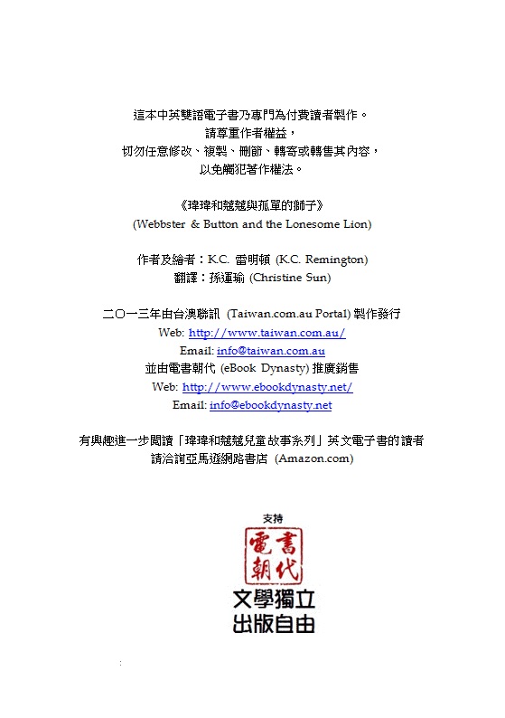瑋瑋和蔻蔻與孤單的獅子 (Webbster & Button and the Lonesome Lion)
