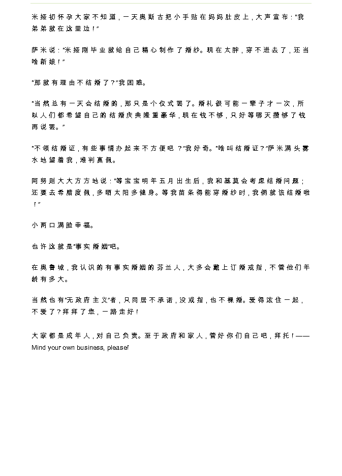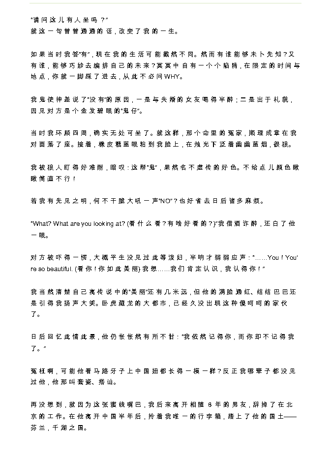 通过一个个生活故事,写出了不同国家人民在生活观念和生活方式上的差异;反映出东西方文化冲突的根本分歧所在,真切而独到地抒发了作者的人生感悟。