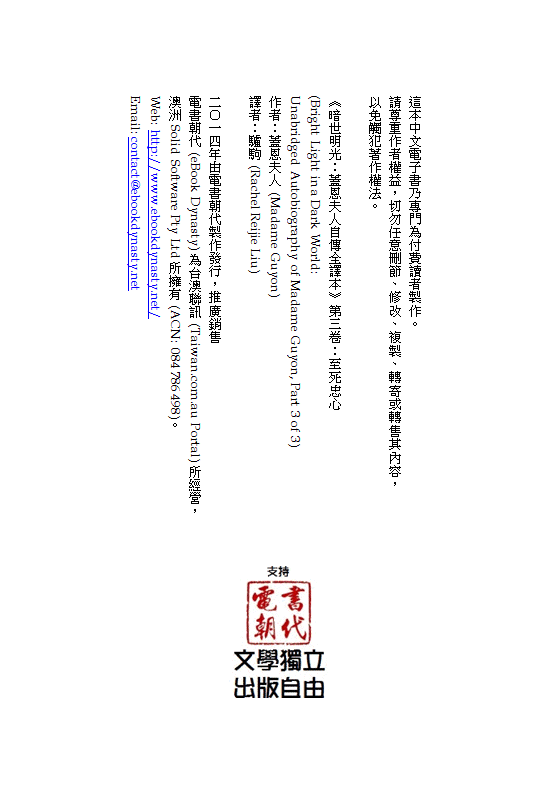 《蓋恩夫人自傳全譯本》第一部:從死亡得生命專頁