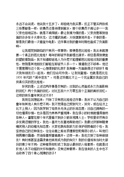 法兰西斯和迪诺拉上高中之后,琳达和雷蒙很想继续付出时间、情感和无限的关爱,他们没有钱收养孩子,便决定成为寄养家庭,专门照顾没有人要的婴儿,最后也收养了其中三个。这三个孩子都有严重的身心残疾,各种恐怖的故事也在他们的成长过程中浮现:小时候被父母殴打、虐待、忽略,父母吸毒而让孩子也染上毒瘾,甚至造成神经性的永久残害。琳达的家庭因此成为各种身心残疾症状的大集合,不知情的外人可能会以为这些严重的病症让孩子们根本没有机会过任何正常生活。